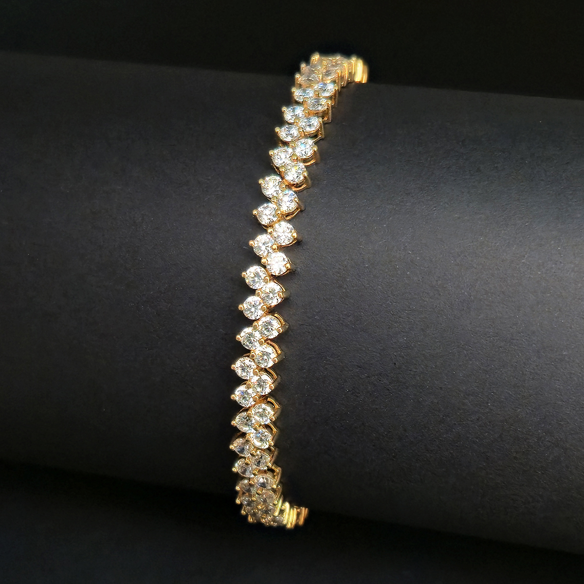 A classic tennis bracelet in brilliant yellow gold that highlights its inner light and elegance.