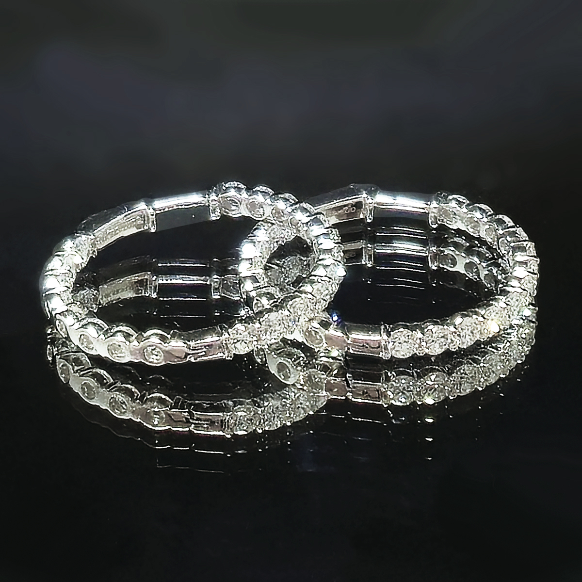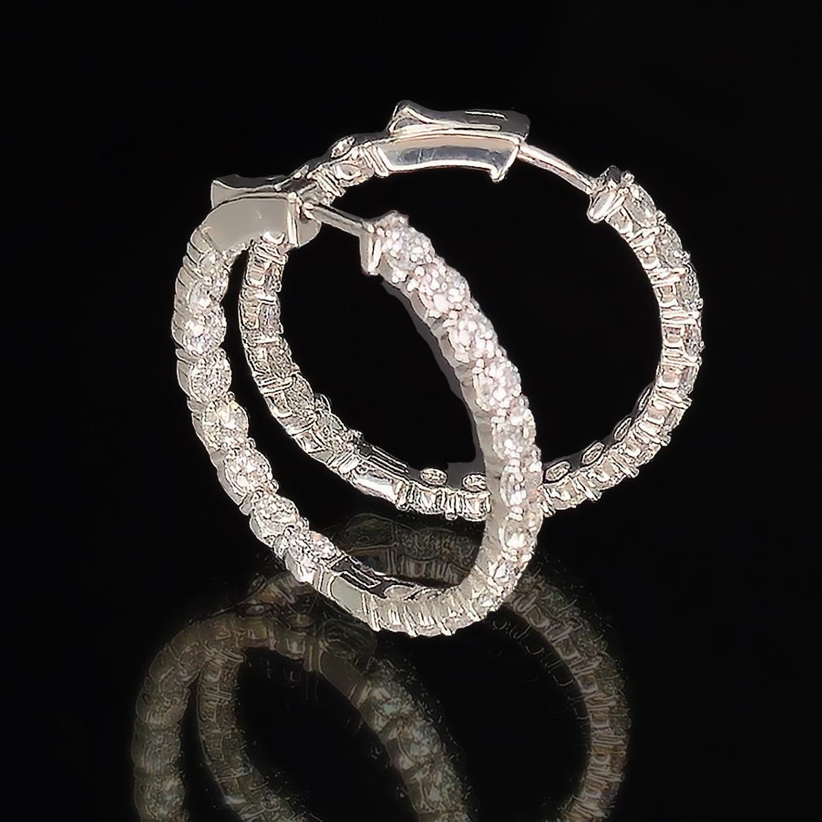 Brilliant white gold hoop earrings set with lab-grown diamonds.
